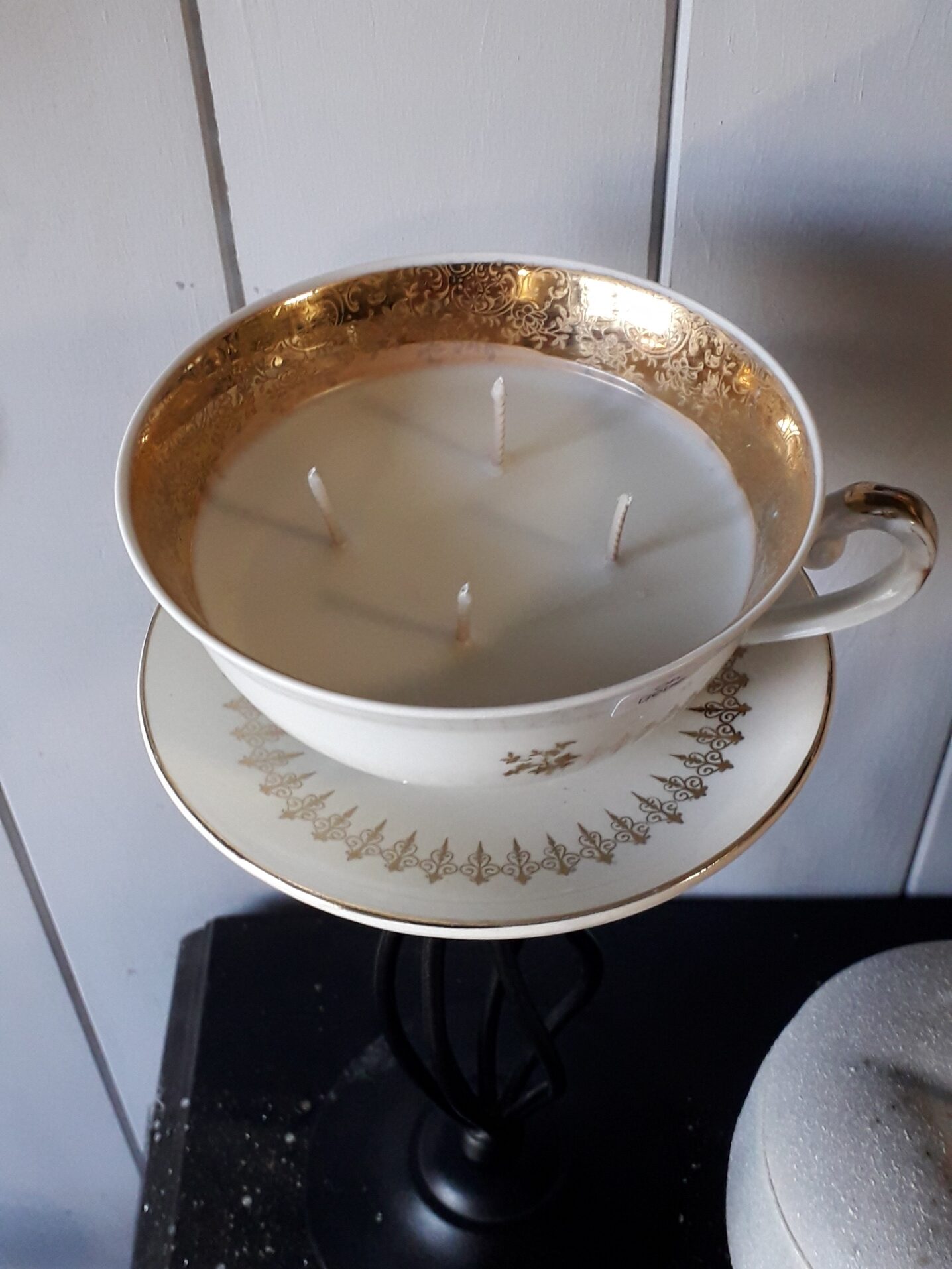 Des tasses chinées aux quatre coins de la France par moi meme, transformées en bougies uniques. Chaque pièce est une histoire, chaque cadeau, un original.